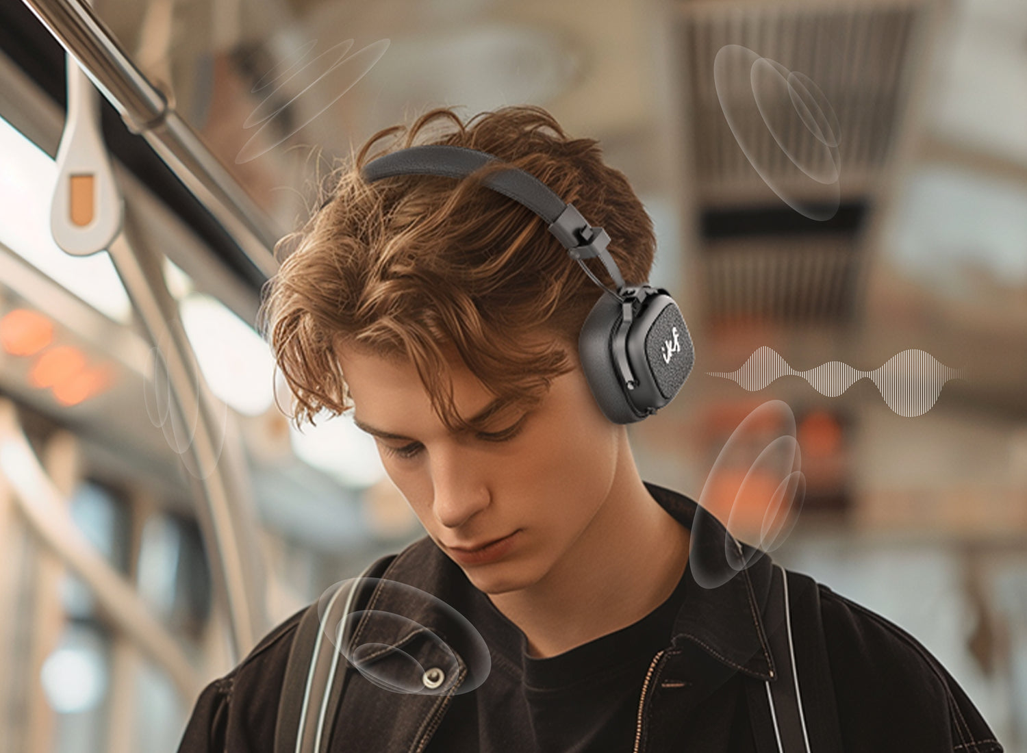 iKF Nano Active Noise Reduction Headphones, Transparency Mode, 140 Hours Playback Time, Wireless/Wired Mode, Bluetooth Headset with Microphone, App Custom Settings iOS/Android