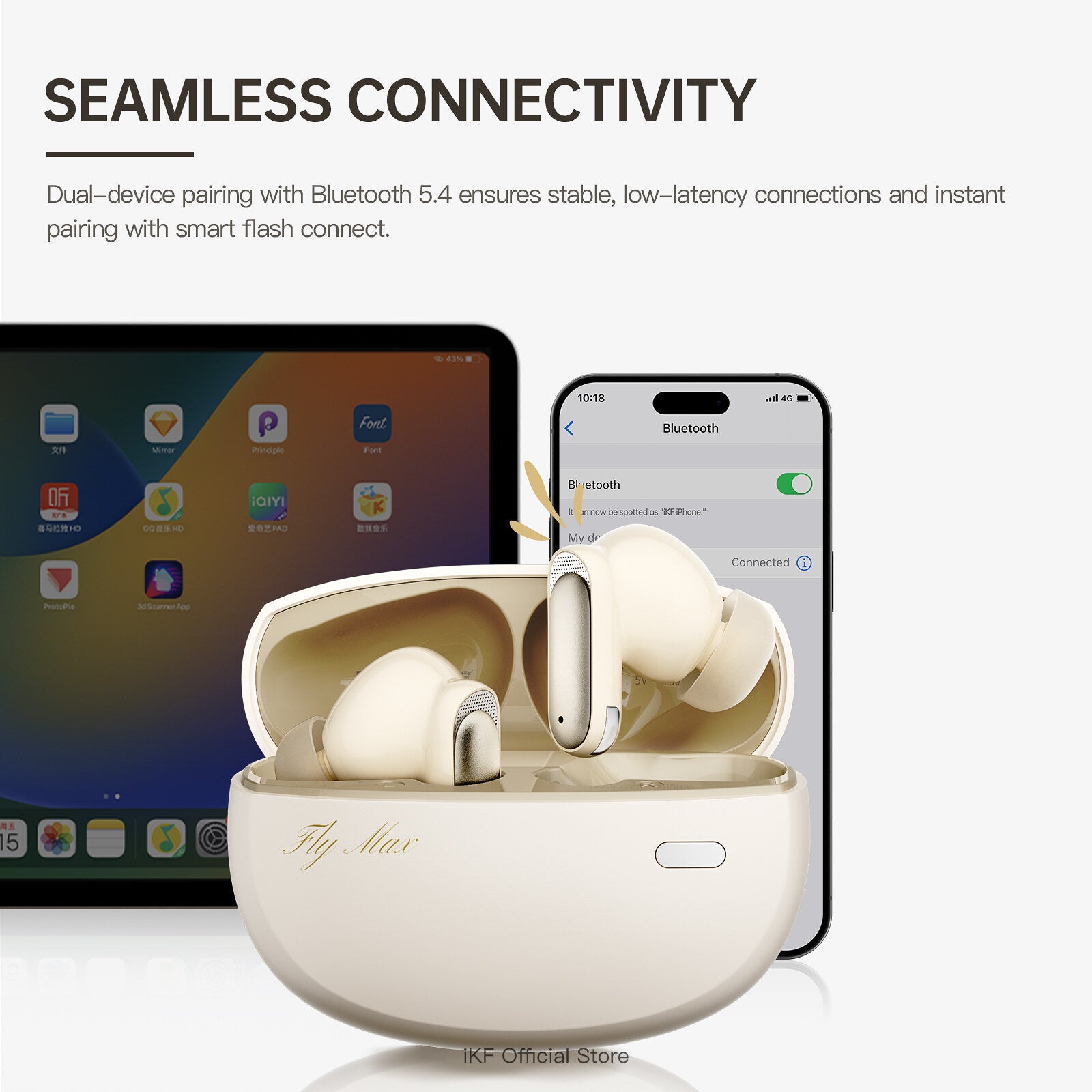 iKF Fly Max Wireless Earbuds Active Noise Cancelling Bluetooth Earphones In Ear ENC Built-in Mic IPX4 Waterproof Multi-point Connect
