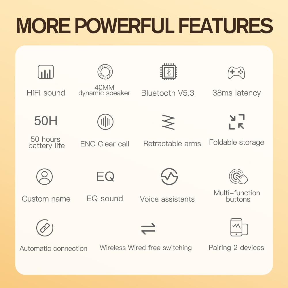 Using 40mm large dual-core dynamic speakers, with high-definition audio analysis to restore every sound detail, just like being in the concert scene.