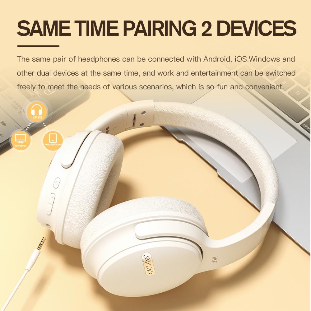 iKF K3 Bluetooth Over Ear Headphone Wireless Wired Headset Built in Mic AUX Cable 50 Hours Play time Noise Reduction Stereo Sound Bass Type-C Charging for Online Class Game Sport Compatible with iOS and Android
