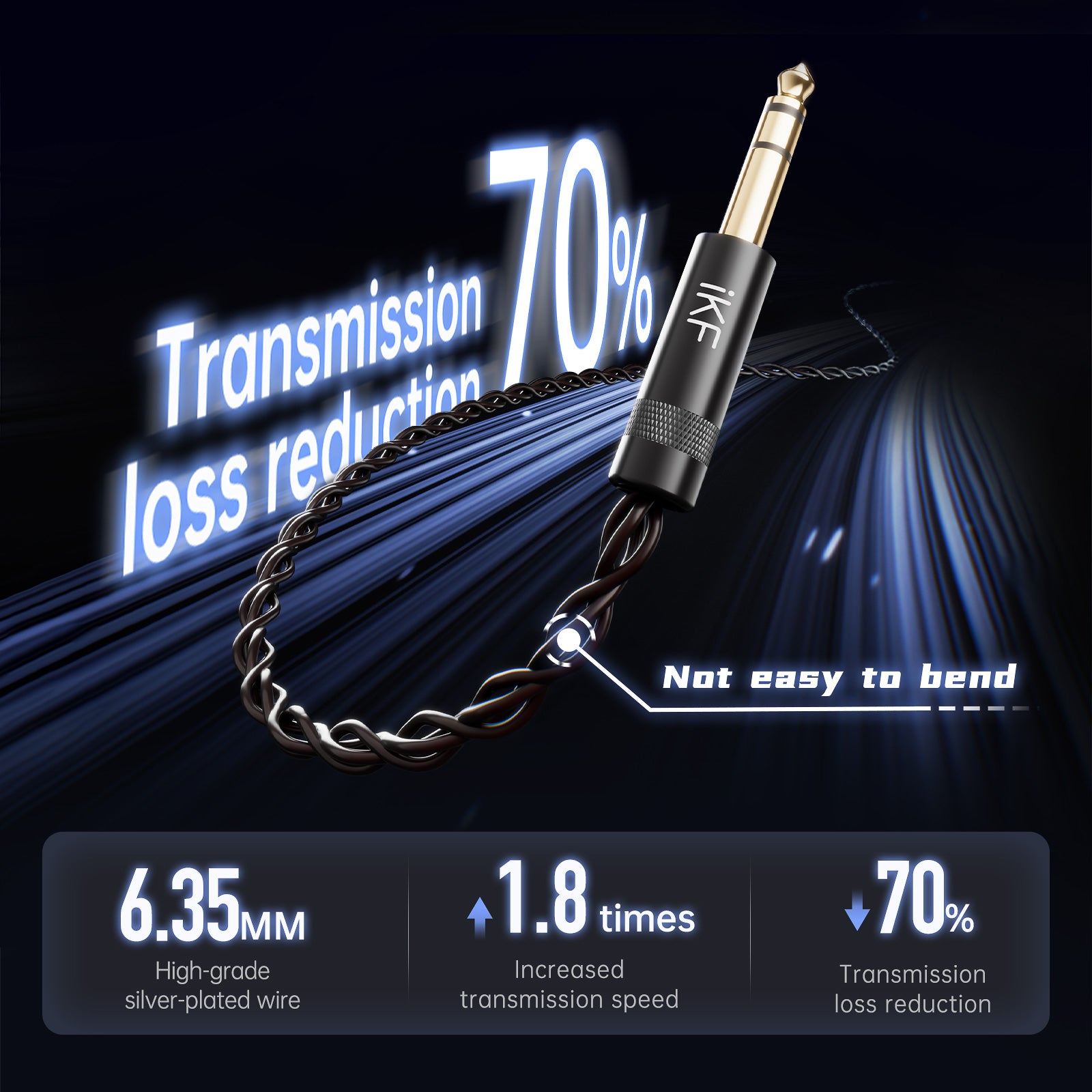 The innovative design features a 6.35mm high-resolution four-strand silver-plated audio cable. It adopts a monitoring-grade cable structure and uses high-purity silver-coated conductors to form the signal transmission channel. The cable is made by precisely twisting four strands of high-purity oxygen-free copper cores, which increases the signal transmission speed by 1.8 times compared to pure copper cables. Additionally, it combines the characteristics of ultra-low resistance and strong anti-magnetic interference.