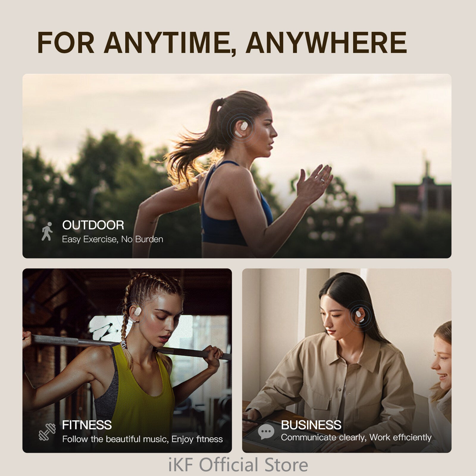 iKF F1 Open Ear True Wireless Earphones Bluetooth OWS Sport ENC Earbuds With Mic IP67 Waterproof HiFi Sound