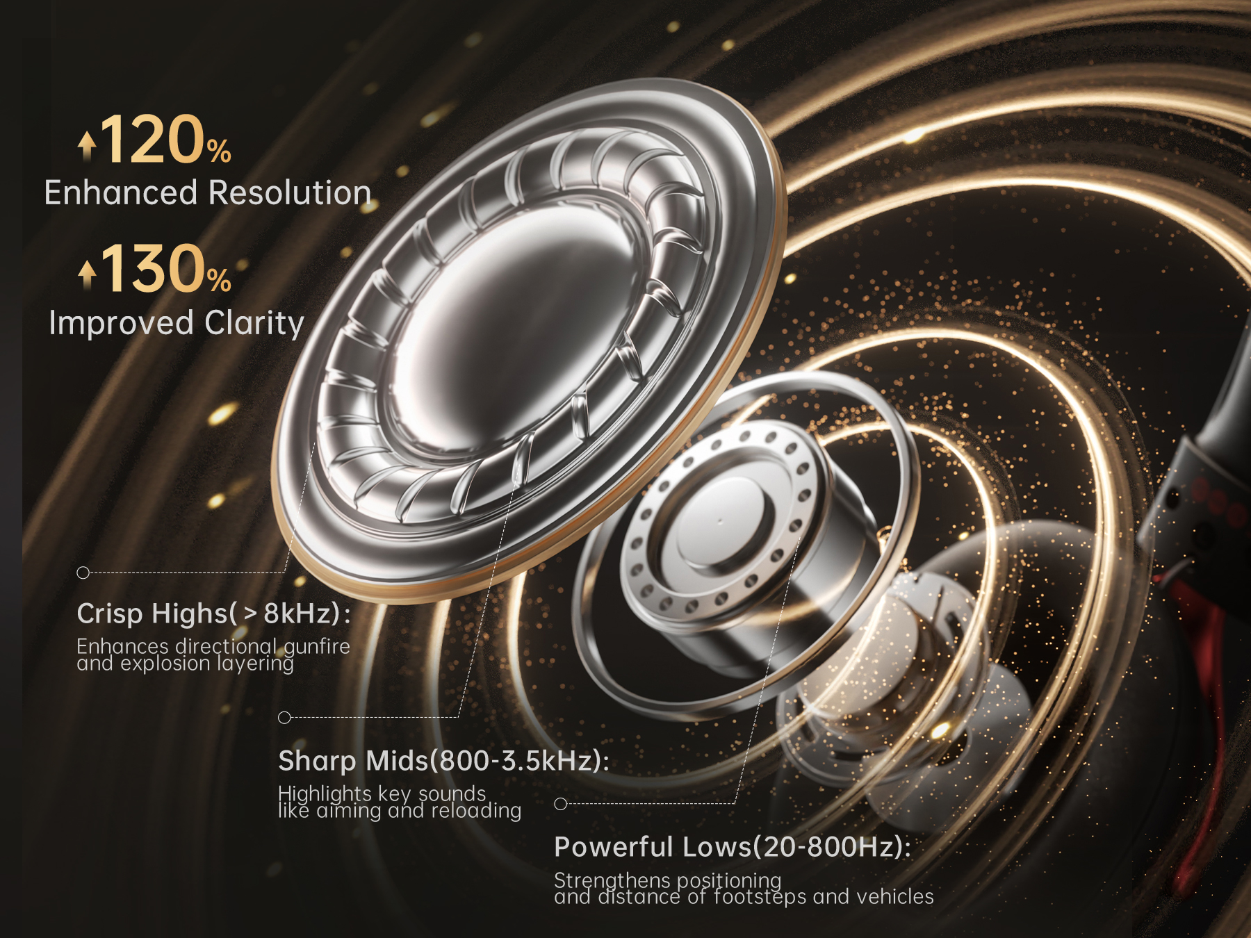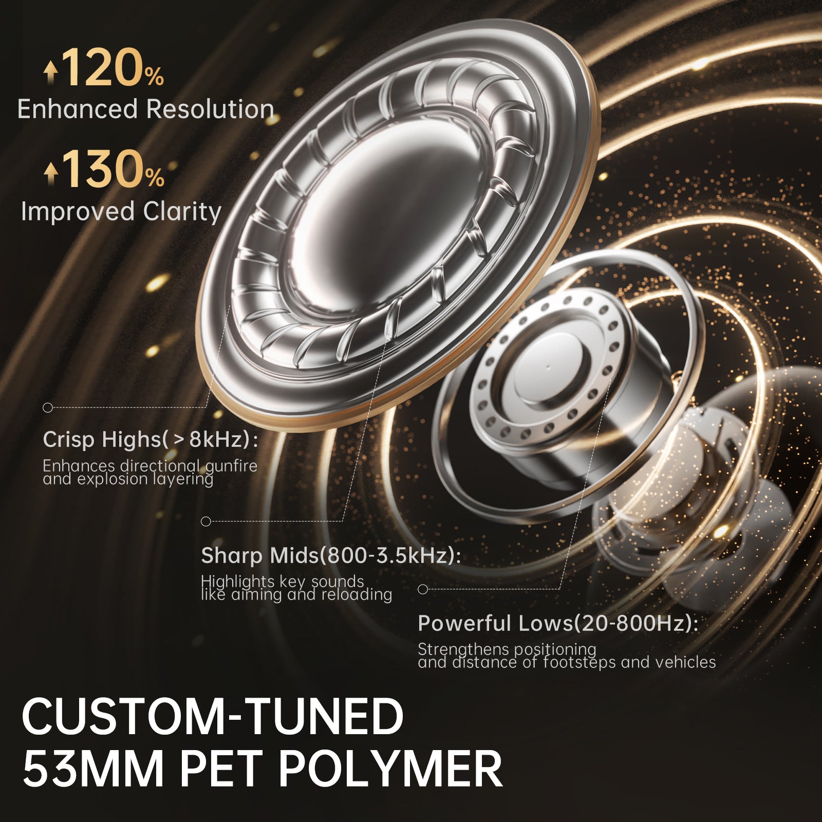 Custom-Tuned 53MM PET Polymer Diaphragm: Powerful large driver delivering an immersive gaming experience. Ultra-precision FPS-tuned soundstage with deep bass and crystal-clear highs—experience every gunshot and footstep with deadly accuracy.