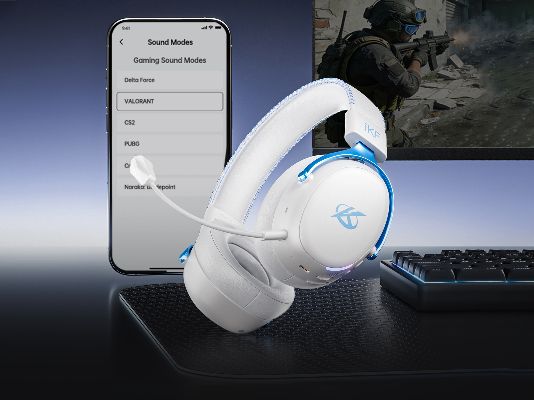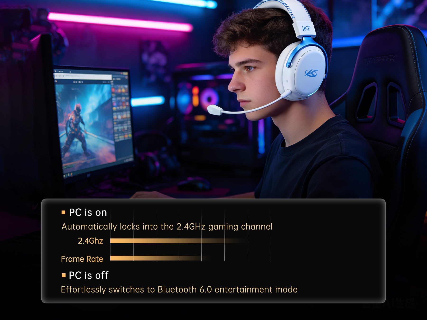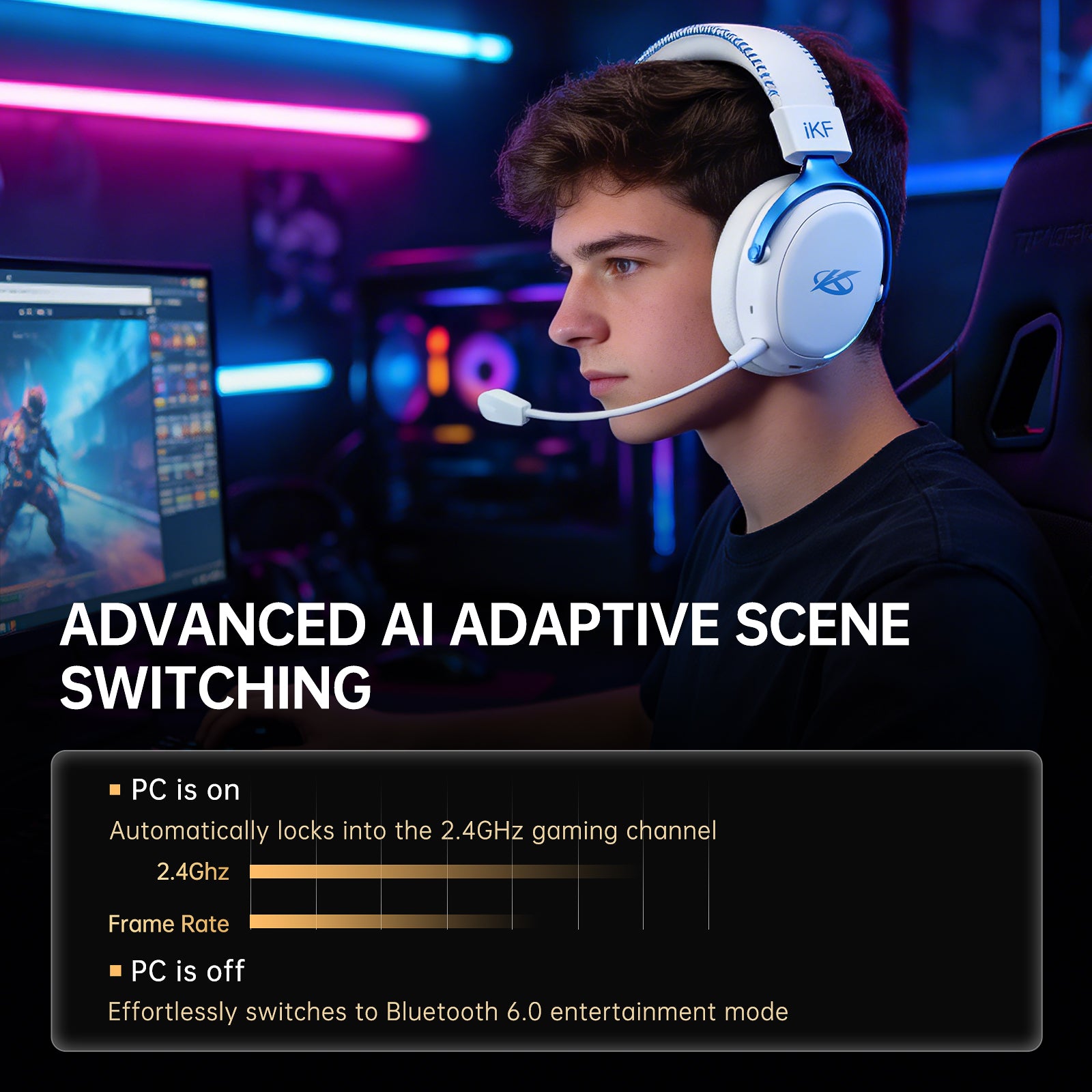 APP Integrated Dual Control System: Smarter integration between devices and app for an upgraded user experience. Full control at your fingertips via the iKF App—adjust EQ, lighting, ANC, and game modes across platforms in real time.
