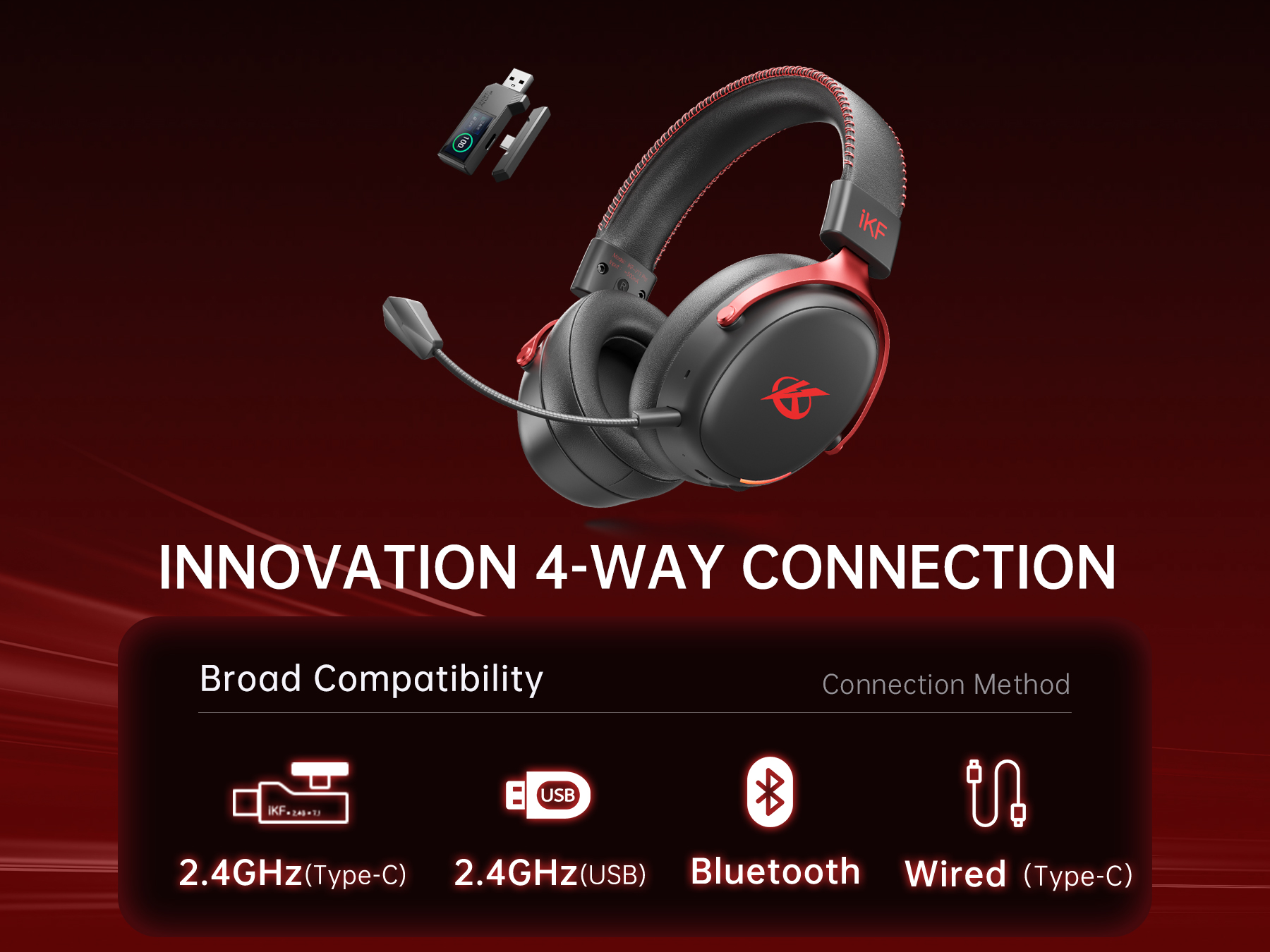 4 Connection Modes for All Scenarios: Bluetooth, 2.4G (USB/Type-C), AUX wired—seamless switch across all platforms.