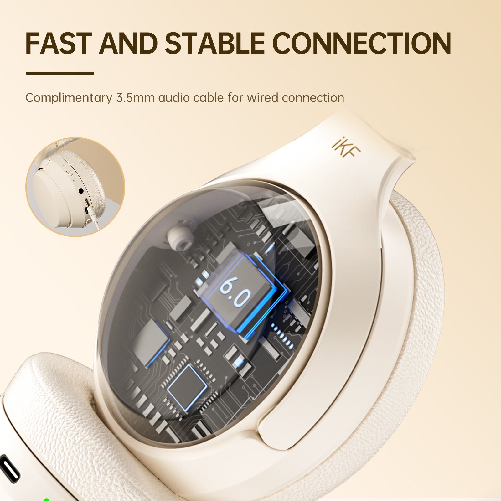 iKF T1 Pro Wireless Bluetooth Headphones Over Ear Wired Headset Built in Mic AUX Cable 100 Hours Play time Noise Reduction Stereo Sound Bass Type-C Charging for Online Class Game Sport Compatible with iOS and Android