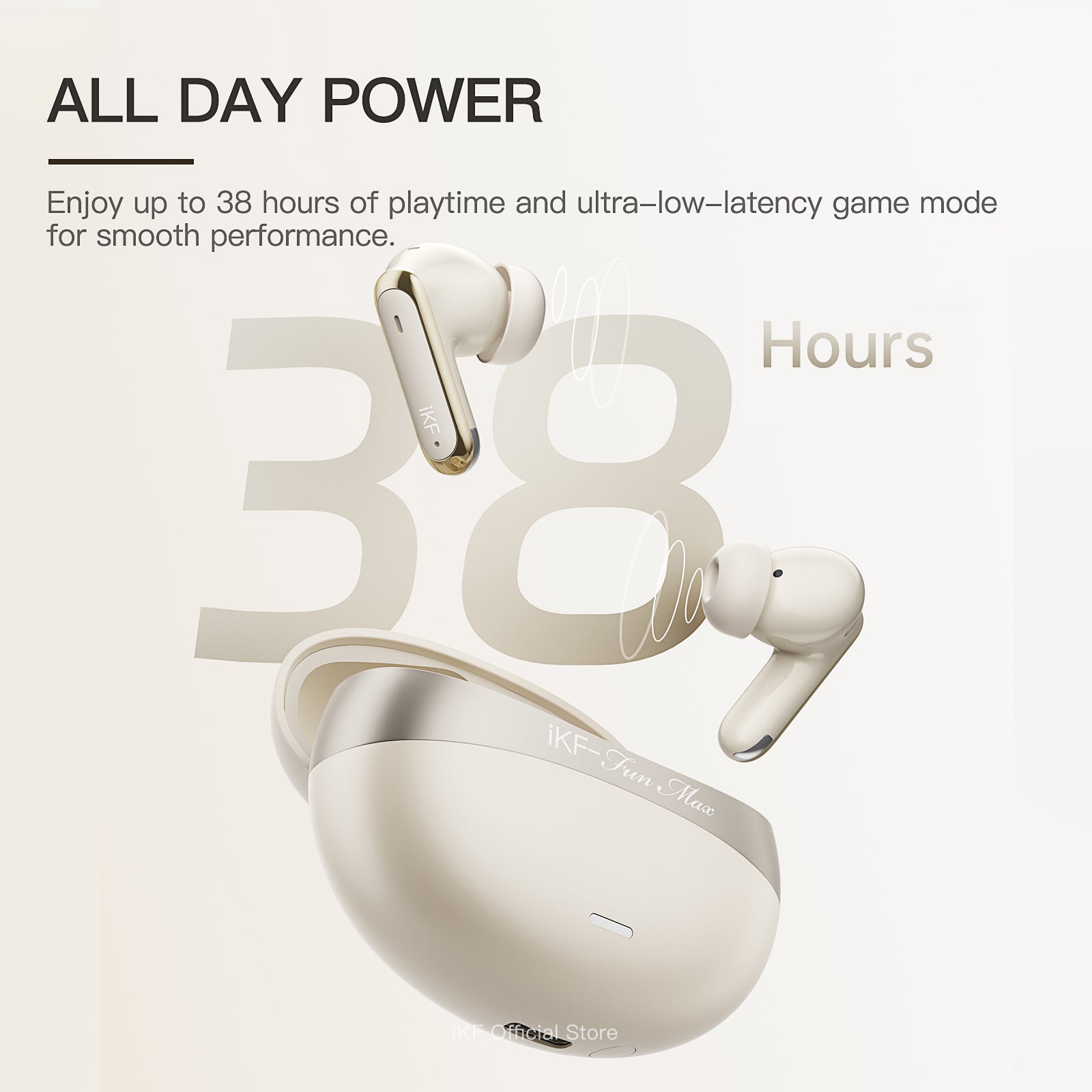 iKF Fun Max Wireless Bluetooth Earbuds with LDAC, 50dB ANC, Game Mode, 38H Playback, and V6.0 Chipset