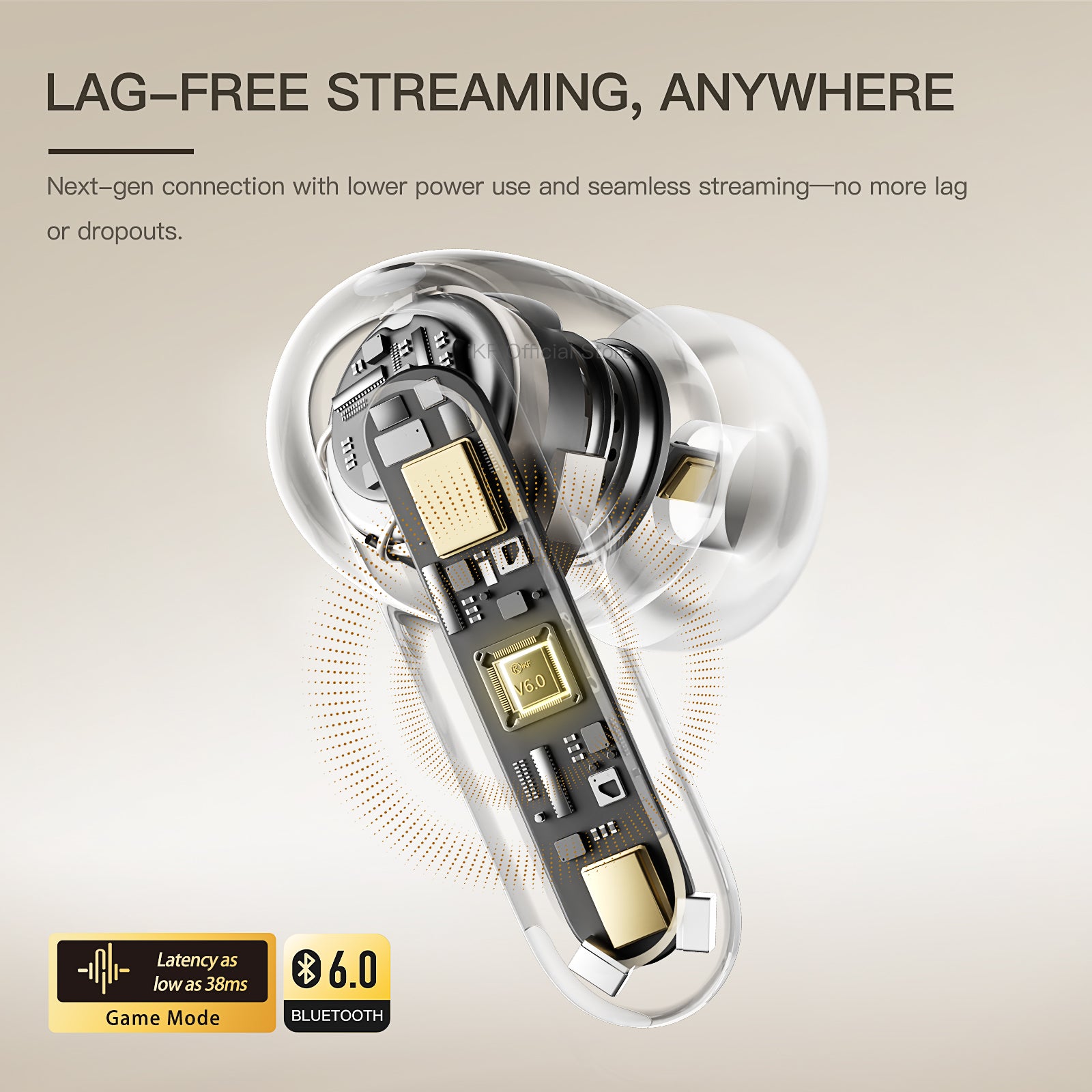- Triple Mic with Hybrid ANC – Smart 6-mic system scans your ear canal and environment, delivering dynamic active noise cancellation up to -50dB.