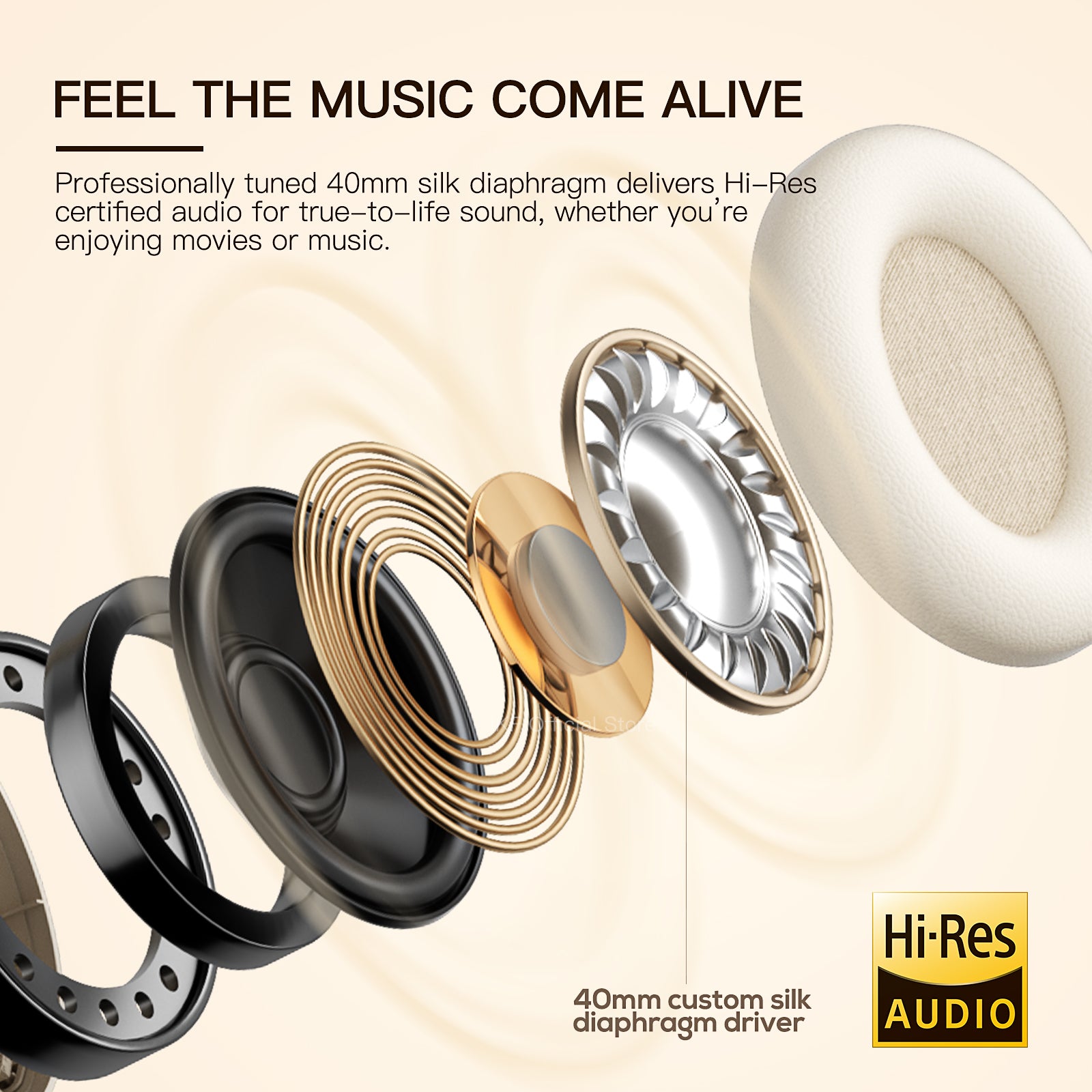 - Featuring 40mm custom silk diaphragm drivers and Hi-Res certification, these Bluetooth headphones deliver high-fidelity sound for audiophiles. Whether you're enjoying music, movies, or podcasts, experience studio-quality sound.
