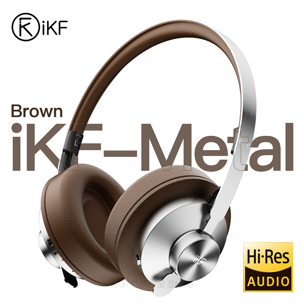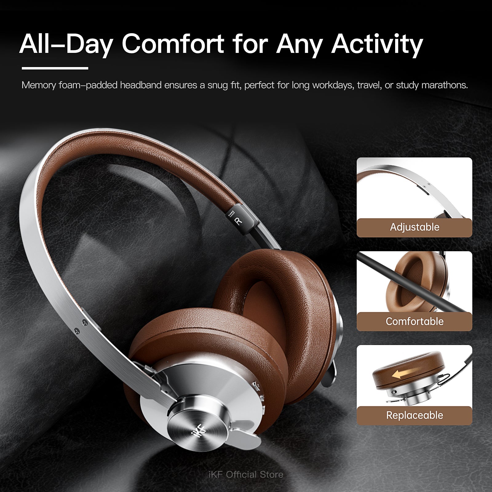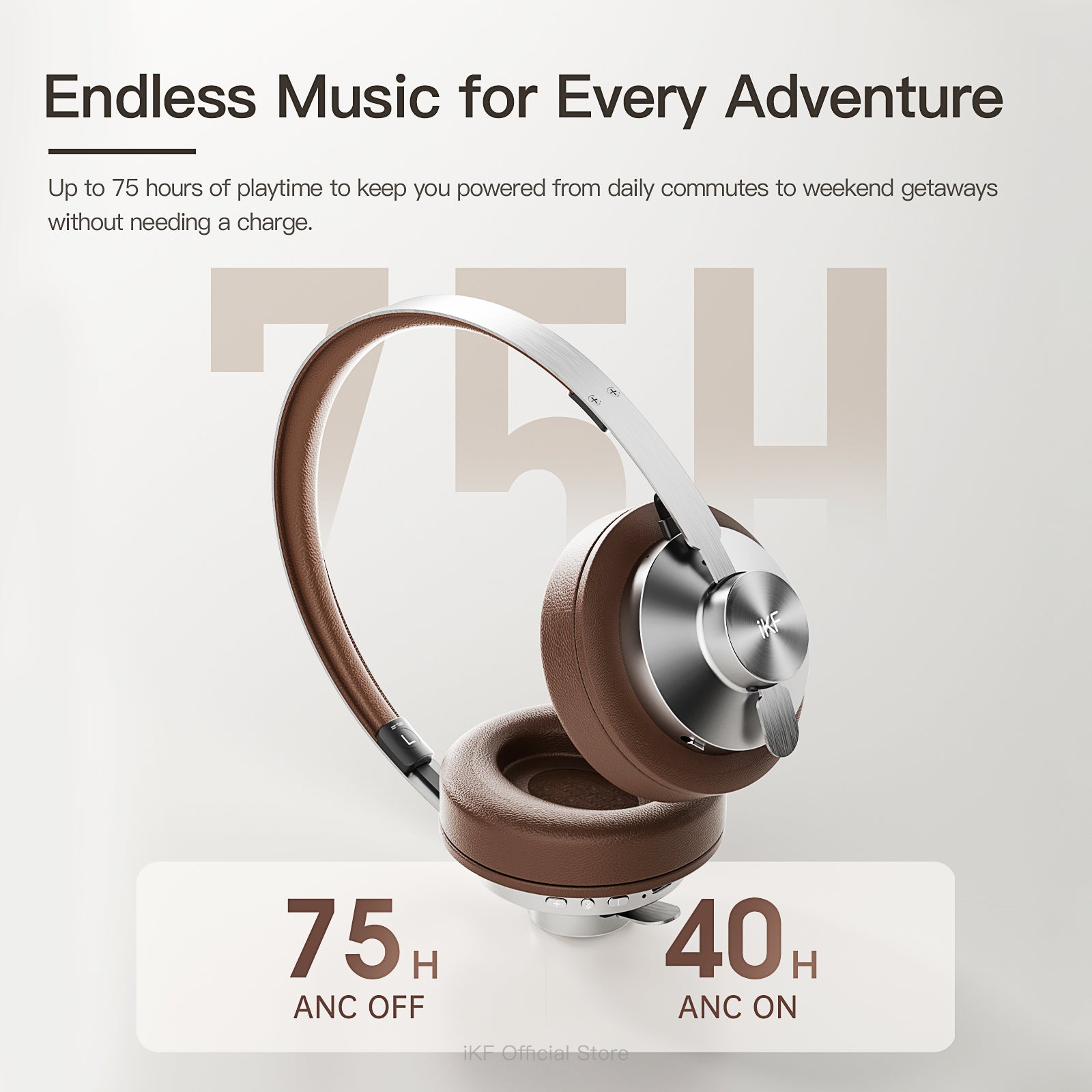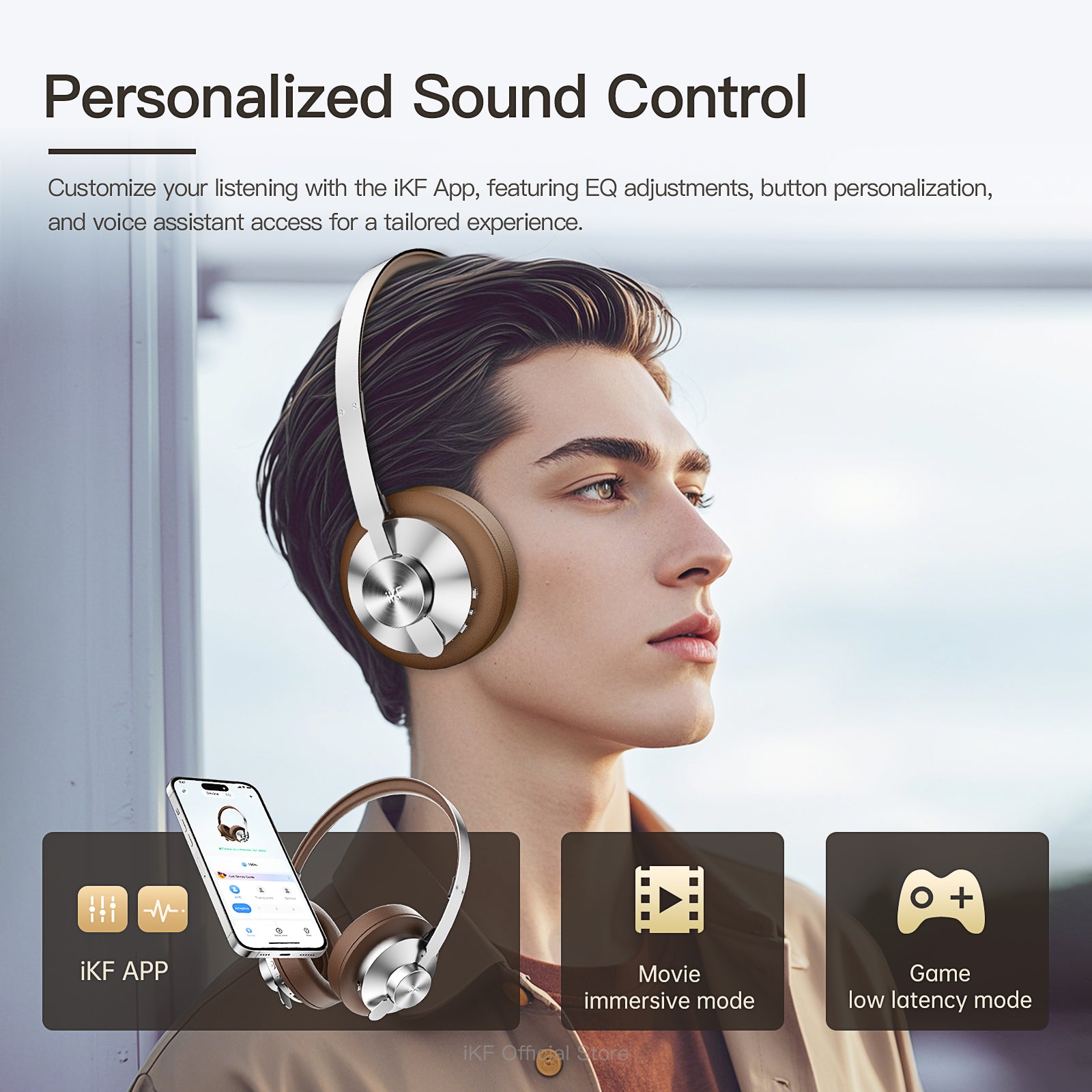 iKF Metal Wireless Bluetooth Over-Ear Headphones, Hardcore Full Metal Design with Dark Leather, Advanced ANC to -52dB, Hi-Res 40mm Drivers, 5-Mic ENC for Clear Calls, 75H Playback, AUX Wired Mode, App Customizable