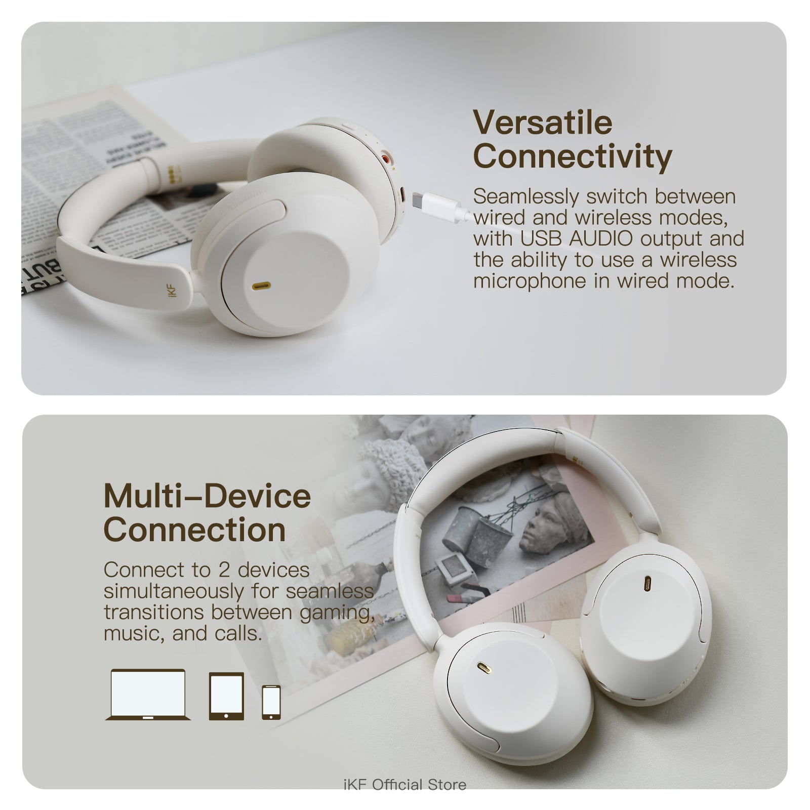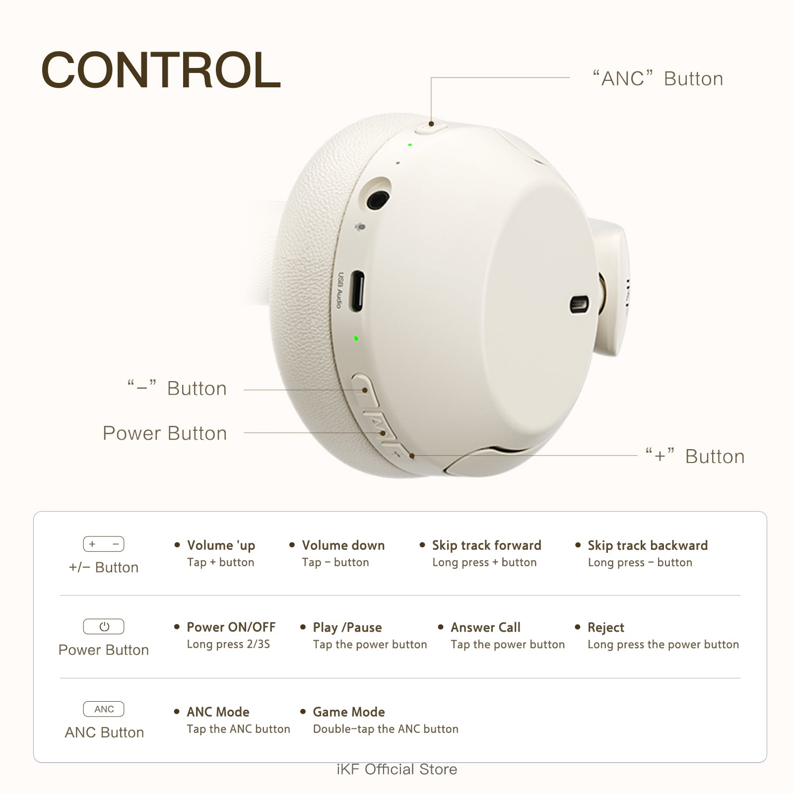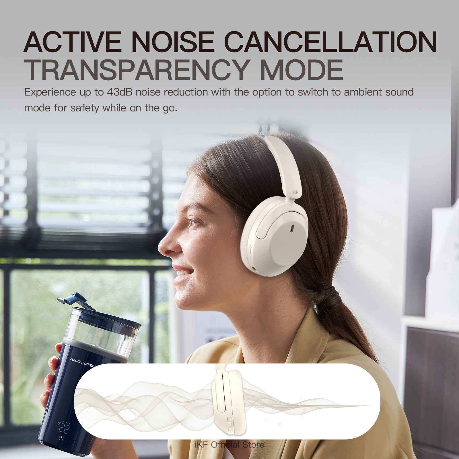 iKF T3 Wireless Over Ear Active Noise Cancellation Bluetooth Headphones Built in Mic 125H Playback for iOS Andriod Workout