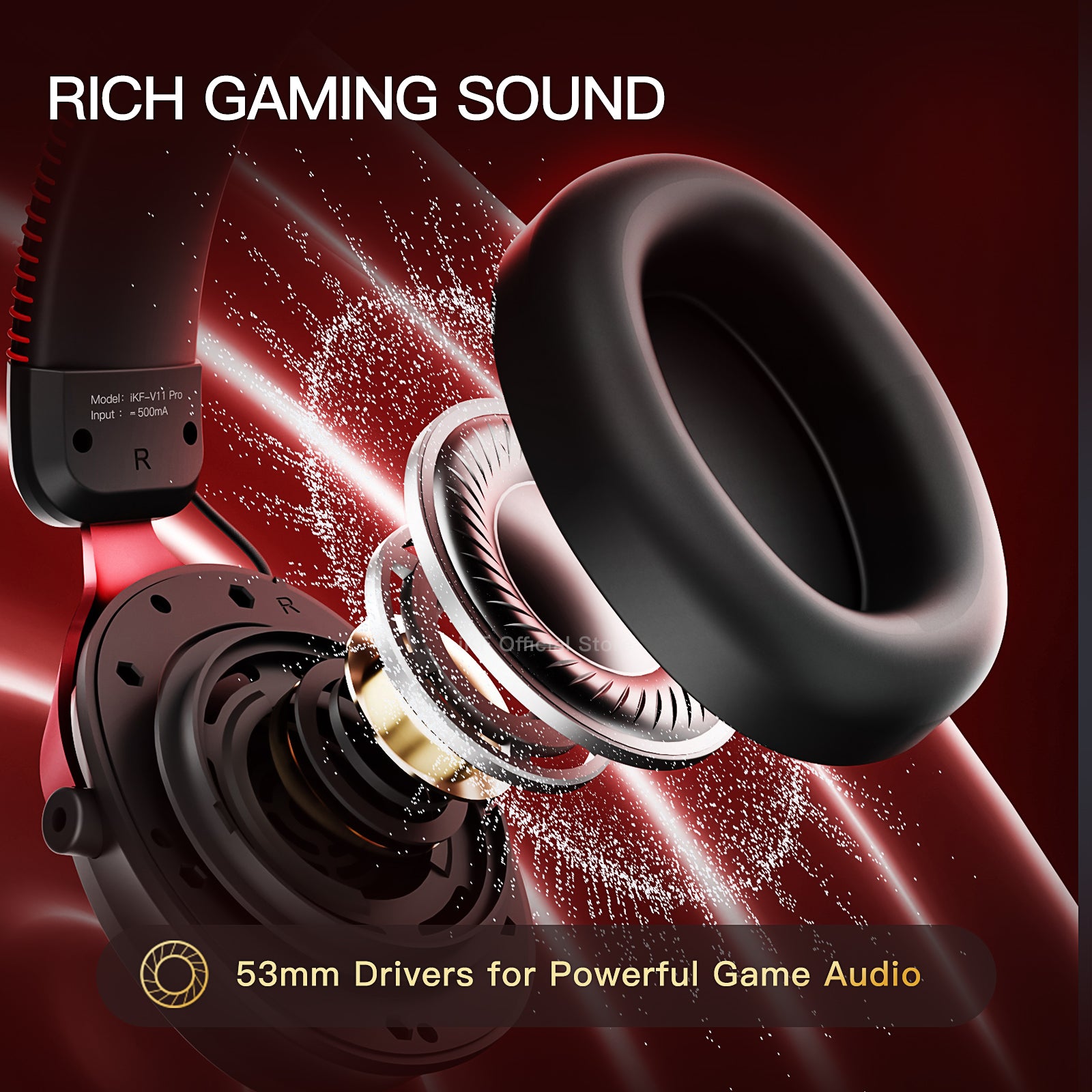 iKF V11 Pro Wireless 2.4G Bluetooth Headphones Gaming Wired Headset 125H Playtime 3.5mm for iOS/Android PC